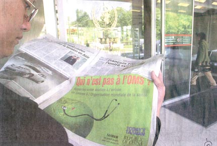 WHA五月十九日將在瑞士日內瓦行,我新聞局已在當地媒體「日內瓦論壇報」刊登廣告,積極表達台灣希望加入WHO。(特派記者方賓照攝) |