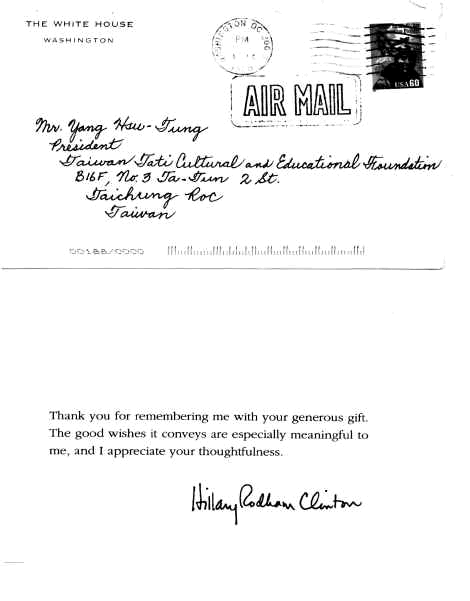Letters from Hillary Rodham Clinton, the First Lady of White House, U.S.A.