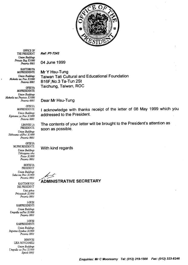 Letters from Nelson Mandela, President, South Africa