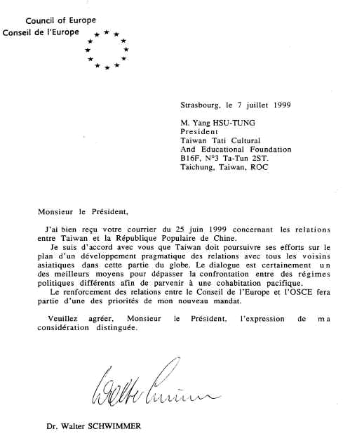 Letters from Walter Schwimmer, the Secretary-General, Council of Europe