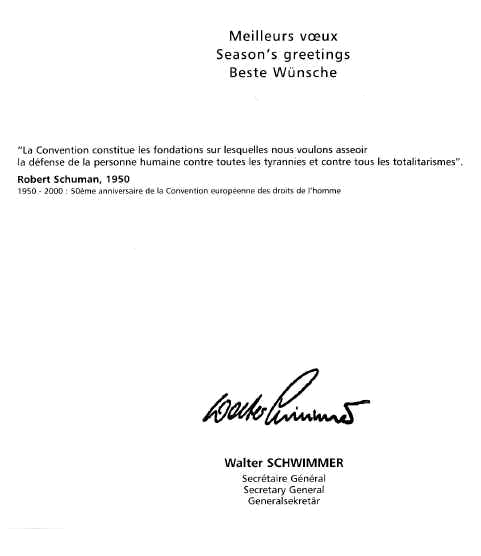 Letters from Walter Schwimmer, the Secretary-General, Council of Europe
