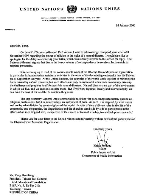 Letters from Hasan Ferdous, the office of Secretary-General, U.N.