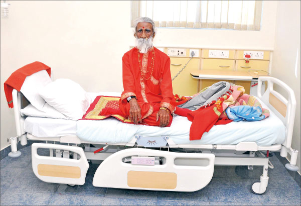 雅尼(Prahlad Jani)住進西部城市阿默達巴德(Ahmedabad)的一家醫院,有30名醫師對他進行24小時的觀察。(法新社)