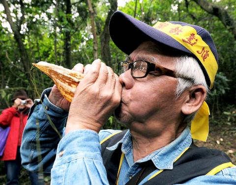 Center for Ketagalan Culture and History, blows into a conch shell to summon