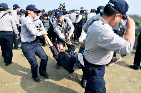 Usually in Miaoli, peaceful protesters are only taken into police vehicles