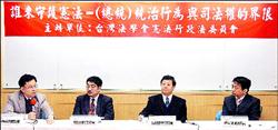 〔記者孫友廉/台北報導〕台北地院審理國務機要費案,對於起訴是否違憲、認定六項秘密外交非屬機密…,外界皆有不同看法,台灣法學會昨天上午舉行「誰來守護憲法」座談會,與會學者大致認為現今院檢似乎忘了「司法自我抑制」,大法官也應及時作出解釋,釐清行政、立法與司法間的關係。 台北大學公共行政學系助理教授陳耀祥認為,從該案來看,院檢已捲入政爭,他表示,我國憲法增修條文第二條第四項,賦予總統決定國家安全有關大政方針…權限,均可見機密外交、援助中國民運人士…,都屬總統的政治行為,非法院所能介入。 淡江大學公共行政學系施正峰教授也指出,美國對於如何認定國家機密,是交由總統、司法部長與白宮顧問來認定,美國法官或大法官都會給予尊重。 他認為,我國法官沒有此專業能力,須由總統來判斷,而國務機要費案中,法官認定六項秘密外交並非國家機密,對總統府秘書長陳唐山不來作證,裁定罰鍰,已屬「法官的傲慢」,侵犯了行政權。 中研院人文社會中心助理研究員徐永明認為,一審法官並無任何基礎來認定機密,他觀察指出,現今我國民主化階段呈現的是司法、立法…都想向行政爭權,侵奪直選總統的權力。 與會學者表示,現今屬一歷史時刻,應好好區分釐清三權分立的關係,讓身為「憲法守護神」的大法官來表示意見,居中管制。