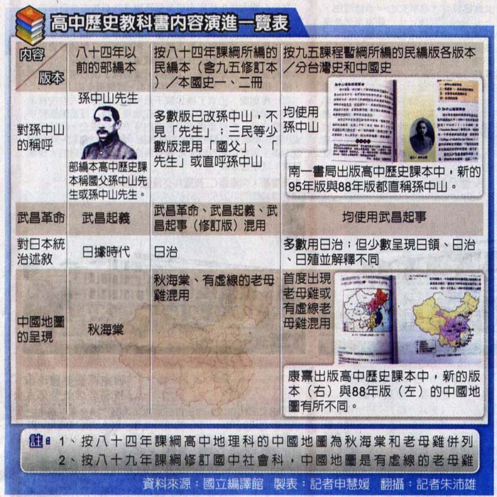 2007.01.30自由時報 國父? 再見! ■ 黃招榮 孫逸仙至死都不知道自己當了中華民國的「國父」,那是蔣介石在一九四○年在其重慶政府的統治區內逕行發佈尊孫逸仙為「國父」,以示自己為國父的繼承人,這完全是蔣的政治操作。 至於所謂空一格,更是威權時代把人神格化的作法。過去我們的歷史教育,純粹是中國國民黨的部份黨史,史觀也完全站在蔣政權的觀點,這才是政治力介入教育。在蔣獨裁統治之下,歷史是中國國民黨手中的 糬,愛怎麼捏就變什麼形。 至於新課本把「日據」改成「日治」,稍有國際法常識的人都知道:日本取得台灣是拿著大清帝國光緒皇帝所批准的馬關條約,取得台灣和澎湖的主權,完全符合國際法領土權源的取得程序,怎能說日本是佔據台灣?用「日治」才是正視史實的正確用語。 至於過去慣用的「我國」、「本國」、「大陸」等用詞,全改成「中國」,則是正視現實的正確用語。你跟一個歐美人士提大陸(mainland),對方根本不知道你在說哪裡;你用中國,China,人家馬上清楚。 可以說,新版歷史教科書只是把中國國民黨黨國教育的「國王新衣」給揭穿了,回到中性、正確的歷史事件敘述,呼應國際社會現實;請問諸位學生家長,你要孩子學哪種歷史? (作者為國小教師) 總統不應唸KMT「總理遺囑」 ■莊和子 新學期開始新版高中歷史第二冊《中國史》,「國父」一詞消失;個人更要進一步提議:總統往後主持重要國家大典,請不要再唸所謂「國父遺囑」,以示民主台灣與國民黨黨國思想的區隔。 因為所謂的「國父遺囑」,是一九二四年時,中國國民黨中央執行委員會第三次全體會議在北京集會,議決此後於開會時,由主席恭誦「總理遺囑」,全體起立,默哀致敬。國民黨政府復於一九四○年四月一日為表揚孫中山先生創建民國,更新政體之貢獻,通令全國,尊稱孫先生為「中華民國國父」。從此,全國習稱之「總理遺囑」,又稱為「國父遺囑」。因此,目前所謂的「國父遺囑」,其實就是國民黨的「總理遺囑」,陳水扁總統是全民選出的總統,何必唸國民黨的「總理遺囑」?時代不同了,官方不必再搞這些八股、封建、黨國化的程序才是。 此外,基於「國父」一詞是獨裁政權專有的稱呼,台灣目前已進入民主化時代,民主國家不會設定所謂「國父」;因為,民主國家不可以強迫全國大、小國民接受、崇拜單一個人的所作所為以及他的思想的約束,因此個人將建請政府將「國父」一詞「去官方化」。諸如「國父遺像」、「國父遺囑」應改為「孫中山遺像」、「孫中山遺囑」;「國父紀念館」改為「孫中山紀念館」或「孫逸仙紀念館」。 (作者為民進黨立法委員) ■ 余哲彰 辛亥革命成功中華民國建立時,孫中山當時人在美國,還是透過美國的報紙報導才知道,因此中華民國根本不是孫中山所創立的。是以,目前全世界所承認的「中國」──中華人民共和國,其對孫中山的正式稱號也只是「革命先行者」,而不是充滿封建與父權色彩的「國父」。如果台灣人現在還稱與台灣的命運毫無牽連的孫中山為「國父」的話,不但顯得既不合時宜,而且恐怕還會被人嘲笑這是「非其鬼而祭之,諂也」,自取其辱。 事實上,全世界絕大部分的國家都沒有所謂的「國父」,這既不影響到這些國家的歷史延續性,更不會讓這些國家就此亡國,國民黨立委李慶安批評新版教科書是在推動台獨教育,並指控這是:「要亡其國先亡其史」,簡直是讓人感到既荒謬又匪夷所思!胡說八道! (作者為公務員)