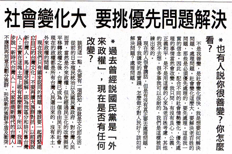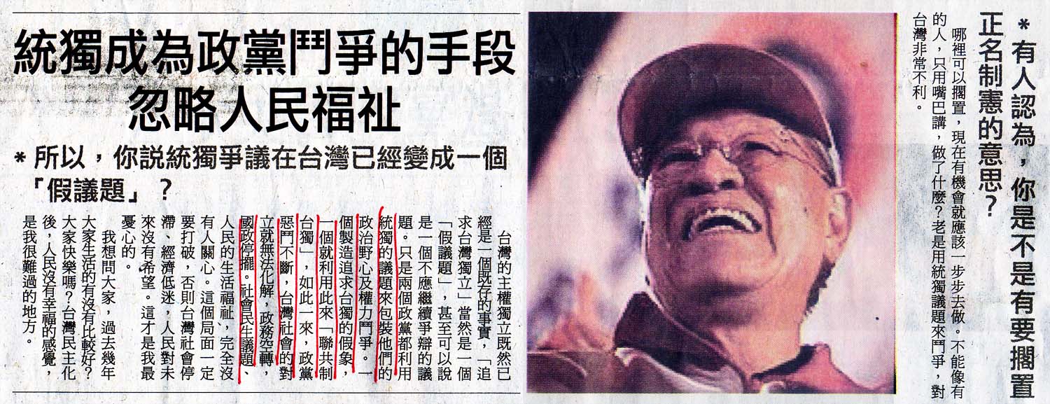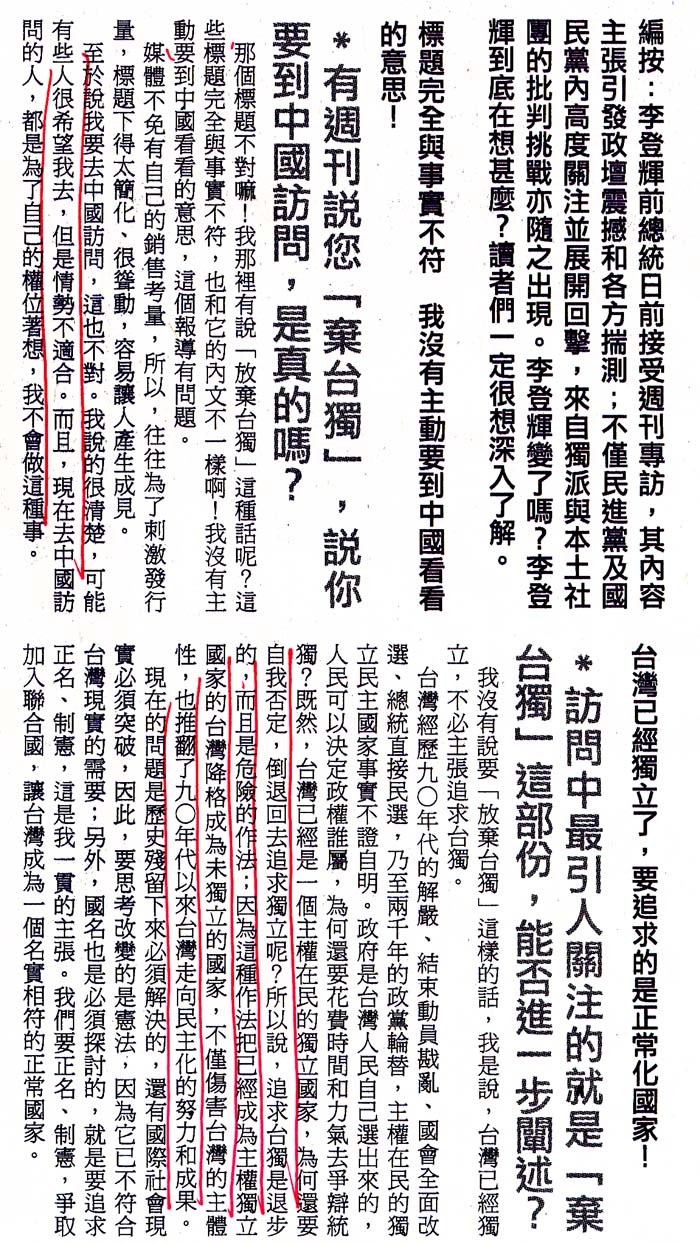 2007.02.02自由時報 李登輝堅持正名、制憲,正常化國家
