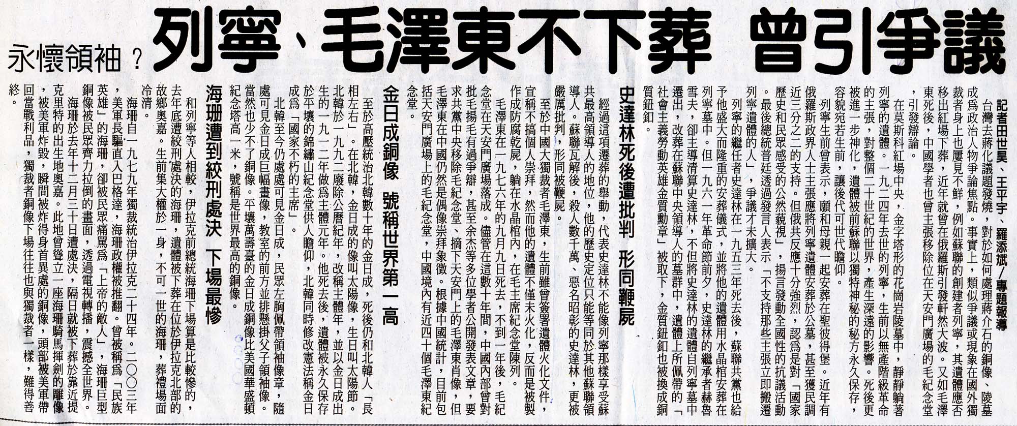 2007.02.08自由時報 列寧、毛澤東不下葬 曾引爭議
