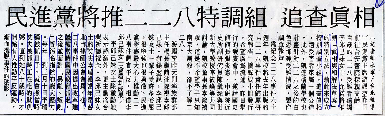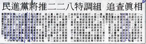 2007.02.16自由時報 民進黨將推動二二八特調組 追查真相 |