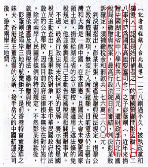 2007.03.04自由時報 捐助對岸學校 彭蔭剛須補稅