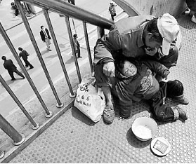 【大紀元訊】前不久深圳發現一名被截肢摘除睾丸的幼童棄屍,引人懷疑有將兒童致殘後操控其乞討。這樣的懷疑其來有自。北京一名78歲退休老幹部曾臥底丐幫調查被脅迫、誘騙、利用的未成年乞討群體的情況達兩月餘,並且上書中共國家總理溫家寶,但時至今日,街頭殘童行乞依舊,城市痼疾仍在。 據《北京青年報》報導,北京退休老幹部曹大澄關注乞丐始於2005年夏天,當時其回到家鄉齊齊哈爾,在龍沙公園見到一對來自河南駐馬店的老婦,地上擺著「告白」為身邊患腦癱病的女兒乞討醫藥費。 待曹大澄在深圳一處過街天橋上,「駐馬店」、「腦病」等字眼直撞他眼睛,怎麼又是來自駐馬店的生病乞童,幾天後同一個乞童又現身一家超市前,只是「告白」內容換了樣,幾次遇到「駐馬店」為乞童,令曹大澄不禁心生懷疑,於是決定臥底丐幫,摸清他們的來路。 為了打入乞討丐幫圈,翌日,曹大澄身穿一套接近乞丐的行頭,拄棍、捧碗出現在天橋,曹大澄最後在一名有20多年乞討經歷的乞丐屈老友身上得到駭人聽聞的答案。 屈老友說,深圳丐幫多來自河南、安徽,一名被業內稱為「花子首富」的人,盤踞此地數座天橋已有二、三年之久,病重乞童的結局是失蹤,之後便有新的病殘兒接續。 病殘乞兒來自5個管道:租借、拐騙、購買、收留、撿拾。賣相不慘的,「花子首富」便對病殘兒下毒手,斷腳筋手筋、斷胳膊斷腿。他的行乞經是「要想要到錢,手腳不能全」。越像活屍越能博得路人同情,同時亦好操縱,不會逃跑。 那麼,孩子從哪兒來呢?曹大澄的幾翻詢問下得知,在一些出租房、公廁、林蔭道上經常會有棄嬰,拾荒者一撿到孩子便改行做乞丐,或是轉手賣給職業乞丐,成交額視棄嬰病殘弱程度而定,孩子病相越慘價錢越高。職業乞丐更是起早貪黑搜尋棄嬰。 |