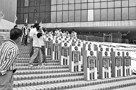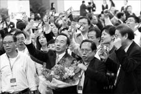 2007.03.27大紀元時報 香港特首 官方版曾蔭權 民間版梁家傑 香港民間海陸反小圈子選舉 第三屆香港行政長官選舉25日在民間一片譴責小圈子選舉的聲浪中舉行,由中共當局欽點的現任特首曾蔭權,一如所料的以高票當選。有立法會議員在投票場外抗議中共操控選舉,實行獨裁統治,為絕大部分香港人沒有權投票選特首感到悲哀和可恥。 為推進香港的民主發展,有團體在同日發起民間公投,就特首候選人、2012雙普選以及最低工資等問題進行民間投票。全日共有近8千人投了票,其中包括候選人梁家傑及天主教香港教區主教陳日君樞機。民間投票結果是梁家傑以超過六成的得票贏了曾蔭權。(大紀元)◇(相關新聞見A5版) |