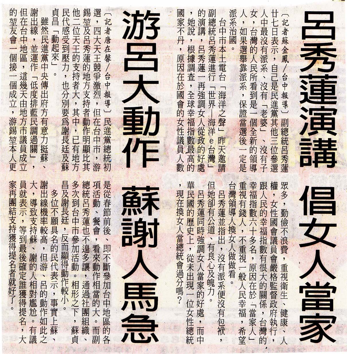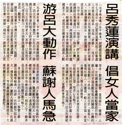 2007.03.28自由時報 呂秀蓮演講 倡女人當家