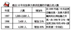 ¡i°OªÌ¨vè¡B±çÄ£¢¬´ì¤ÓµØ³ø¾É¡j3¤ë30¤é¡A«e¤¤¦@¾n¥[®³¤j¤j¨ÏÀ]¥~¥æ¤Hû®aÄݱiÄ~©µ¡A¦b´ì¤ÓµØ°ê·|«eÁ|¿ìªº¡uÁn´©¨â¤d¸U°hÄÒ¡vªº¤j«¬¶°·|¤W²{¨¡A¤½¶}«Å¥¬»P¤¤¦@¨Mµõ¡A¤ä«ù¨â¤d¸U¤¤°ê¥Á²³²æÂ÷¤¤°ê¦@²£ÄÒ©M¦@«C¹Î²Õ´¡C¦¹¨Æ¥ó¤w¤Þ°_¥[®³¤j¥D¬y´CÅéÃöª`¡C¦Ó¤¤¦@«hn¨D¥[®³¤j¬F©²©Úµ´±iÄ~©µ¥Ó½Ð§ÈÅ@¡C ·í¤é¤W¤È¡A¤W¦Ê¦W¥[ªF¦a°Ï¥Á²³»E¶°°ê·|«e¡AÁn´©¨â¤d¸U¤¤°ê¥Á²³°h¥X¤¤¦@ÄҹβÕ´¡C°ê·|ijûù§B¡D¦w¼w´µ¡]Rob Anders¡^¨ì¶°·|²{³õ¤ä«ù¨ÃºtÁ¿¡C«e¥ô¥[®³¤j¸ê²`¥~¥æ©x¥¬¿à®¦¡D³Á§J¨È·í¡]Brian McAdam¡^¨ì³õ¤ä«ù¡CµÛ¦WµS¤Ó¸Ç¾ÇªÌ¡A¾|¤å¡DÀj§J¡]Rabbi Reuven Bulka¡^³Õ¤h¥H¤Î«e¥[®³¤j¦w¥þ±¡³ø§½¨Mµ¦pµe¥DºÞ¡B²{¥ô¥[®³¤j¥Á¥DÁp·ù°ê®a¦w¥þ°ÝÃD¸ê²`¦¨û¡A¤j½Ã¡D«¢·ç´µ¡]David Harris¡^P«H¤ä«ù¡C 48·³ªº±iÄ~©µªí¥Ü¡A¦o¬O2004¦~ÀH¦P¥ô¾°]°È¤Hûªº¤Ò´B½Õ¬£´ì¤ÓµØ¡C¥Ñ©ó¨p¤U¦V©P³òªº¤HÁ¿zªk½ü¥\¯u¬Û¡A¤Þ°_¤j¨ÏÀ]ª`·N¡F¦b¦o³zÅS¦Û¤v¬Oªk½ü¥\¾Çû«á¡A«K¨ü¨ìºÊ±±¡C ¤µ¦~µy¦¡A¥L̤Ұü±µ¨ìªð°êªº«ü¥O¡C¤j¨ÏÀ]±ý±N¨äÅ@·Ó¦¬¦^¡C¬°Â\²æ¦^°ê¨ü¢®`ªº©R¹B¡C±iÄ~©µ¥¼¨Ì¥Oú¥X¥~¥æÅ@·Ó¡A©ó3¤ë5¤é³]ªkÂ÷¶}¨ÏÀ]ÂðΡA¨Ã©ó30¤é¦V¥[®³¤j¬F©²´M¨D§ÈÅ@¡C¤£¹L¨ä¤Ò´B¤wªð¦^¤¤°ê¡C¦oªí¥Ü¡A«Ü¾á¤ß¤Ò´Bªº±¡ªp¡C ¹ï¦¹¡A¤¤°ê¤j¨ÏÀ]¤½¨Ï»Î°ÑÃÙ¶À´f±d¦V¡mÀô²y¶l³ø¡nªí¥Ü¡A¦pªG¥[®³¤j±µ¨ü³o°_¥Ó½Ð®×¡A±N·|¿E«ã¤¤°ê¡C ¨S¦³¤¤¦@ªº¤¤°ê«ü¤é¥i«Ý ±iÄ~©µ¦bÁn©ú¤¤»¡¡G¡u¤µ¤Ñ¦bÁn´©¨â¤d¸U°hÄҹ椪º¬¡°Ê¤¤¡A¥O§ÚªY¼¢ªº¬O¡A§Ú¤£¶È¬Ý¨ì¶V¨Ó¶V¦hªº¥Á²³¦bı¿ô¡AÂ\²æ¤¤¦@¨¸ÆFªº±±¨î¡A¦Ó¥B§@¬°¨ä¤¤ªº¤@û¡A§Ú¯à¦Ûı¦a¯¸¥X¨Ó¡AÁ¿¥X¤ßùظܡC¡v ±iÄ~©µ»¡¡G¡u¦b¤¤°ê¡A¥b¼Æ¥H¤Wªº¥Á²³¦b¾ú¦¸¹B°Ê¤¤¾D¨ì¹L¢®`¡A¦Û¤¤¦@¦¨¥ß¥H¨Ó¦³8¤d¸U¥Á²³³Qh±þ¡A¤¤¦@¹ï¤¤µØ¥Á±Úºë¯«¼h±ªº¢®`ªi¤Î©Ò¦³¤H¡A¨ú¦Ó¥N¤§ªº¬O¤¤¦@±j«Á¥Á·NªºÄÒ¤å¤Æ¡A¬r®`¤F³o´X¥N¤H¡C¡v ¤¤¦@¾n¥~¨ÏÀ]±±¨îµØ¤HªÀ°Ï ±iÄ~©µÃÒ¹ê¡A¹ïªk½ü¥\ªº¾D¹J¤£¶È§½¦b°ê¤º¡A¤¤¦@¾n¥~¨ÏÀ]¤]³Q§@¬°§ðÀ»ªk½ü¥\ªº°ò¦a¡C¤¤¦@¾n¥[¨ÏÀ]´N¦³Ó³¡ªù±Mªù¦¬¶°ªk½ü¥\¾Çû©M²§¤v¤H¤hªº¸ê®Æ¡C ±iÄ~©µ»¡¡A¤¤¦@¤j¨Ï¦b¥l¶}¥þÀ]·|¤W´£¨ì¡A¥L´¿µ¹¥[®³¤jijû¡B¥[¬F©²©xû¥H¤Î«eÁ`·þ°e¥h»z½°©M¶CôÕªk½ü¥\ªº§÷®Æ¡C¤¤¨ÏÀ]ªº¥~¥æ©xûÌÁÙ±±¨îµØ¤HªÀ°Ï¡A¥H¹F¨ì¦b¥[®³¤j±±¨î¥D¬yªÀ·|ªº¥Øªº¡C ±iÄ~©µÁ|¨Ò»¡¡A2005¦~¡A·sð¤H¥Ó½Ð¶i¤J¥[®³¤j®É¡A¥L̾ޱ±´A¦@ªºµØ¤HªÀ¹Î©M¯d¾Ç¥Í¡Aµ¹¬ÛÃö³¡ªù¼g«Hªý¤î´±©ó³ø¾É¤¤°ê¹êªpªº·sð¤H¹qµø¥x¶i¤J¥[®³¤j¡A¹ê»Ú¤W¡A³o¨ÇªÀ¹Îªí¹Fªº³£¬O¨ÏÀ]ªº·N¹Ï¡C¥LÌÁÙ¤U¥\¤Ò¹C»¡Rogers¡Aªý¤î·sð¤H¦b¥[®³¤j¸¨¦a¡C ¥[ijû¡G²æÂ÷¤¤¦@ ¤@Ó°¶¤j¬¡¥Í¥Íªº¨Ò¤l °ê·|ijûù§B¡D¦w¼w´µ¨ì¶°·|²{³õ¤ä«ù¨ÃºtÁ¿¡C¦w¼w´µ¦b±µ¨ü¥»³ø°OªÌ±Ä³X®É»¡¡G¡u¡]±iÄ~©µ¥X¨«¤¤¨ÏÀ]¡^³o¥ó¨Æ«Ü«n¡A¦³«Ü¦hªº¬G¨Æ»ÝnÁ¿µ¹¤HÌ¥hÅ¥¡A»Ýn©ñ¤jÁnµ¡A§i¶D¤HÌ¡C¡K¡K¦³¤@Ó¬¡¥Í¥Íªº¨Ò¤l¡A´N¬O¦³¤H±q¤¤¦@¨º¸Ì²æÂ÷¡C³o¬O¤@Ó°¶¤jªº¨Ò¤l¡A§Æ±æ¦³§ó¦hªº¤H̳o¼Ë¥h°µ¡C¡v ¦b¶°·|ºtÁ¿¤¤¡A¦w¼w´µ°ª«×µû»ù¤F¬¡°Ê°Ñ»PªÌ¡A¥L»¡¡G¡u§A̹ï©ó¨º¨Ç³Q¥}¸Tªº¤H¡A¾D¨ì»Å¦Dªº¤H¡A¥H¤Î¨º¨Ç¦b¦@²£ÄҲΪv¦Ëî«áªº¤H¡A¶Ç¹F¤F³o»ò¤@Ó«nªº«H®§¡C¡v ¦w¼w´µ¥H¦Û¤vªº¸g¾ú¬°¨Ò»¡¡G¡u¦pªG¦³¤H¦b20¦~«e§i¶D§Ú¡B§Úªº®a¤H¤Î¨º¨Ç¦bªF¼ÚÅKµ¡«á¥Í¬¡ªº¤HÌ¡A¥ḺNÀò±o¦Û¥Ñ¡A¥ḺN¤£¦A¦]¬°¤Ï¹ï¬YÓ¬FÄÒ¦Ó³QºÊ¸T©Î¾D¨üÀ£¤O¡A©ÎªÌ¯à¦Û¥Ñ¦a°í«ù¦Û¤vªº«H¥õ¡A§Ú¤£·|¬Û«H¡C¦ý¬O²{¦b¤H̯à°÷¦b¦Û¥Ñ¥@¬É¤¤µo¥X³o¨Ç«H®§¡A¥L̦bµ¹¨º¨Ç¦bÅKµ¡«áªº¤H̱a¨Ó§Æ±æ¡C´N¹³¥H«e´H§N¡B¼éÀ㪺¤Ñ®ð¤@¼Ë¡A§A̦b¶Ç¥X¯u¬Ûµ¹¦Ëî«á±ªº¤HÌ¡CÁÂÁ§AÌ¡C¡v §Æ±æ·½¦Û©ó¨üÀ£¢ªÌªº«i®ð ¤Ó¸Ç¾ÇªÌ¾|¤å¡EÀj§J³Õ¤h¦bP¶°·|ªº«H¤¤»¡¡G¡u¦b¥@¬É¦V¸gÀÙ¡y¯«¹³¡z¨õ°`ªº®ÉÔ¡A§Ṳ́d¸U¤£¯à§Ñ°O¤¤¦@ªº´Ý¼É¡C¦P³o¼Ëªº¤H°µ¥Í·N¬O¹D¸qªº§ë°¡A°µªº¤]¬O³ÌÃaªº¥Í·N¡C±þ¤Hªº¤H¤]¦æÄF¡C¡v Àj§J³Õ¤h»¡¡G¡u¨â¤d¸U¤H°h¥X¤¤¦@²Õ´¹w¥ÜµÛÀ£¢µ²§ôªº¶}©l¡C¦pªG§ÚÌÄ~Äò¹ªÀy¤H̰h¥X¡A¥L̤S·|±a»â¨ä¥L¤H°h¥X¡A¢®`´N·|µ²§ô¡C¥Ã»·¤£n©ñ±ó¡C¥¨¤jªº¤ý°ê¬Ý°_¨ÓµLªk©ºªA¡A¦ý¬O¤Hªº·N§Ó§ó±j¤j¡C«i®ð©M§Æ±æ¬O¦¨¥\ªºn¯À¡C¤W«Ò«O¦ö§AÌ¡C¡v ¥[®³¤j¥Á¥DÁp·ù°ê®a¦w¥þ°ÝÃD¸ê²`¦¨û¤j½Ã¡D«¢·ç´µ¦bµo¨Óªº«H¥ó¤¤ºÙ¨â¤d¸U¥Á²³°h¥XÄҹβÕ´¬°¡u³Ì¨ã§Æ±æªº¨½µ{¸O¡v¡C«¢·ç´µ»¡¡G¡u§Ú¦P§A¤@°_Æg¹|¨º¨Ç²æÂ÷¤¤¦@¡B¿ï¾Ü¦Û¥Ñªº¤HÌ¡C¨º¨Ç¤Hªº¹Ú·Q¡B¤u§@©M³Ì²×ªº¦¨´N¡A¤@©w·|±a¨Ó¤@ӦۥѪº¤¤°ê¡C¡v ¥Ø«e¡A¤¤°ê¥Á²³¥H¨C¤Ñ¬ù3¸U¤Hªº³t«×°h¥X¤¤¦@ÄҹβÕ´¡A3¤ë30¤é¸Ó¤H¼Æ¤w¶W¹L¨â¤d¸U¡Cªñ¤é¡A¥[®³¤j¬ù¤Q¤j«°¥«ªº¥Á²³¥¿®i¶}¨t¦C¬¡°ÊÁn´©¨â¤d¸