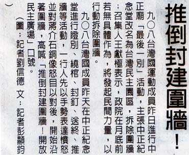 2007.04.02¤j¦a³ø¾É ¥xÆW¿W¥ß½×zÅGÃÒ ¡½ «OÅ@¥xÆW¤jÁp·ù¥D®u·¨ºüªF ªñ¨Ó¦³Ãö¥xÆW¬O§_¤w¸g¿W¥ßªº½×z¡A©óªü½÷§Bªº³Ì·sÁn©ú¡A§_©w¥xÆW¿W¥ß¶i®iªº¨Æ¹ê¡A¤Þµo¥xÁpªº¦M¾÷¡A¥H«e¥xÆW«Ø°ê¤ä«ùªÌ¦¤w»{ª¾¥~¨Ó¬FÅv²Îªv¥xÆWªº¨Æ¹ê¡An«Ø¥ß¥xÆW°ê¡A¥²µM¬O±À½¤¤µØ¥Á°êªºÅé¨î¡A¥]¬A¨î¾Ë¥¿¦W¡B¶i¤JÁp¦X°êµ¥µ¥¶µ¥Ø¡A¦Ó»{ª¾³o¤@¨t¦Cªº«Ø°ê¹Lµ{¡A´N¬O¡§¥xÆW¯u¥¿¿W¥ß¡¨ªº¥²n±ø¥ó¡A¿W¬£»P·í®Éªü½÷§B¥ç¯à±µ¨ü¡A¦¹Æ[©À¦b¥xÆW°ê¤H¥Á¤ß¤¤®Ú²`¸¦©T¡A¤£®e§ïÅÜ¡A²{¦b«o¦]¬°¡§¥xÆW¨Æ¹ê¤w¸g¿W¥ß¡¨ªº½×»¡¦A²{¡A¨Ï¥xÆW¿W¥ßªº¤ä«ùªÌ²£¥Í¤@ÀYÃú¤ô¡C