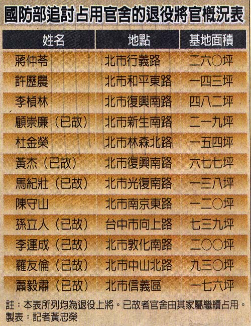 2007.04.03自由時報 退役將官占官舍 價值數十億
