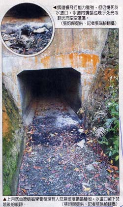 〔記者張瑞楨/中縣報導〕台灣蝙蝠學會前年於高雄縣美濃鎮發現一個隱密水道,最多聚集約五千隻蝙蝠,上月底卻赫然發現有人惡意焚燒雜物,數千隻台灣小蹄鼻蝠幾乎全被燒死,該學會甚至用「滅門血案」形容上述慘狀。 這也是繼去年八月間,有人在台北縣瑞芳鎮濱海公路旁蝙蝠洞前架設鐵皮阻欄與絲瓜棚,導致五十萬至六十萬隻摺翅蝠提早離穴之後,近年第二起嚴重破壞蝙蝠棲地的憾事;十幾年前,瑞芳蝙蝠洞曾有民眾闖入燃放沖天炮,把當時約廿萬隻蝙蝠嚇跑,近年才恢復到上述數量。 台灣遲至一九九○年代,才對蝙蝠進行有系統的研究,在此之前,已不知有多少蝙蝠洞被破壞,前年學會於高縣旗山鎮與美濃鎮各發現一條水道,前者約有上萬隻冬眠的摺翅蝠,後者規模較小,去年五月間發現約五千隻蝙蝠棲息,以摺翅蝠為主,其次是台灣小蹄鼻蝠與台灣鼠耳蝠,這兩個水道也是台灣已知規模最大的摺翅蝠「冬眠洞」之一。 這兩個蝙蝠棲地讓學會如獲至寶,秘而不宣地研究,已發現兩個水道的蝙蝠會「往來」等特殊習性,不料,上月底卻發現有人於美濃鎮水道口惡意焚燒雜物,不但蝙蝠幾乎嚇跑或燒死,水道內還有不少屍體。 學會研究員周政翰指出,學會發現喪生的蝙蝠,主要是飛行速度較慢,且易受驚嚇而死亡的台灣小蹄鼻蝠,不少屍體就泡在水道積水處,飛行能力強的摺翅蝠雖死傷較少,但他們仍在入口發現被燒死的摺翅蝠炭化屍體,顯示當時火燒得很猛烈,台灣鼠耳蝠則因進駐季節尚未來臨而倖免。 研判外來客對蝙蝠陌生引火 學會秘書長徐昭龍感慨地說,國人仍缺乏保育觀念,才會做出這種「滅門血案」,他研判是外來客好奇或對蝙蝠陌生而引火,這種心態類似十幾年前民眾闖入瑞芳蝙蝠洞燃放沖天炮之舉。 一個規模頗大的蝙蝠棲地被破壞,最傷心的莫過於成功大學生命科學研究所碩士班研究生張鈞傑,他研究這兩個水道蝙蝠近一年,不但論文大受影響,他更擔心當地生態會因蝙蝠銳減而失衡,例如吃農作物的昆蟲就可能大增。 |