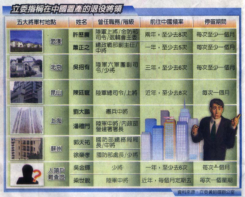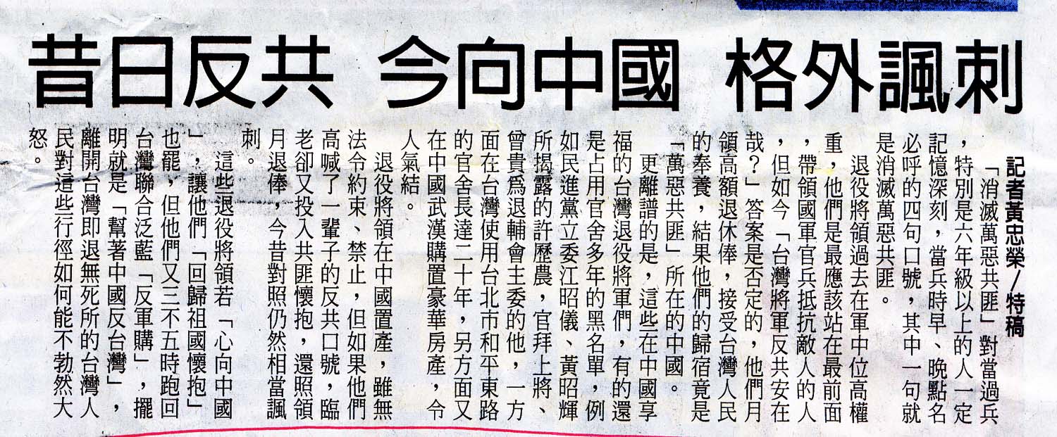 2007.04.06自由時報 綠:退役將領 拿台灣俸中國置產