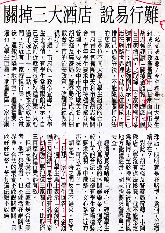 2007.04.14自由時報 關掉三大酒店 說易行難