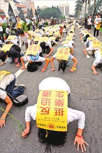 【大紀元訊】為了捍衛台北縣新莊樂生療養院免於被拆遷,「全台鬥陣挺樂生」大遊行昨天下午在中正紀念堂集會後遊行。樂生保留自救會指出,遊行活動不只是為了捍衛樂生院民的弱勢人權,也是為了給台灣一個更好的公民社會。「今天如果不為弱勢團體站出來發聲,明天就可能是自己被迫害」。 據中央社報導,主辦單位表演一段行動劇,表達對政府決策粗糙的不滿,和誓言保留台灣文化資產的最終堅持。中原大學景觀系主任喻肇青表示,實際上目前爭取的保留90%,並非所有樂生院的90%。樂生院在捷運新莊線機廠動工後,已經只剩下27%。 目前要爭取的是這27%的90%。喻肇青表示,如果政府以技術官僚的專業強硬的綁架民意,是不道德的政府。 隊伍中的苦行隊,以六步一跪拜方式表達訴求,受到矚目。隊伍中也高喊「挺樂生、反迫遷、捷運與樂生雙贏」等口號,並且高唱「反迫遷戰歌、美麗島」等歌曲。希望政府興建捷運的決策能夠有公開透明,並在社會大眾的監督下,成立樂生人權文化園區,讓「樂生、捷運能夠雙贏」。 這項遊行活動提出的三點訴求,包括:(一)要求政府承認台北捷運新莊線機廠選址在樂生院是錯誤的政策、(二)恢復樂生病友名譽與去除汙名,確保樂生院民免於強制搬遷的威脅、(三)依法審查與指定樂生院為古蹟,規畫兼顧院民生活、社會教育與地方發展的「樂生人權文化園區」。 主辦單位並逐一唸出台灣上百個社運、環保、社區營造、文化、文史、學生等聲援社團名稱,同時以巨幅布條訴求把淨土留給新莊,讓世界看得見新莊,以人權文化園區,讓新莊與國際接軌。 青年樂生聯盟還以黑色抗議布條貼上行政院長蘇貞昌、台北縣長周錫瑋的人頭像,諷刺蘇貞昌「口惠不實」,雖然蘇貞昌、周錫瑋都先後探訪樂生院,聽取院民心聲,還達成緩拆樂生院共識,以保留90%院區為最高目標,但「這些都是政治人物割稻子尾」接收成果的表現。 樂生保留自救會會長李添培感謝各界的支持,同時強調為了保留樂生,會繼續堅持下去。遊行隊伍中,由樂生院民代步車隊組成的前導隊伍,人手一枝百合花以象徵樂生院與新莊、三重民眾共生,並非對立。 喻肇青強調,政府以技術官僚的傲慢心態,綁架民意與媒體,實際上,由行政院文建會委託第三專業單位提出但行政院卻不願面對的保存90%方案,技術上是可行的,捷運機廠駐車線型軌道,在空車與低速下,線形半徑不應比照一般載客行車規範。 昨天的遊行路線是從中正紀念堂「大中至正」門前出發,經中山南路、立法院,在青島東路口迴轉,經中山南路,抵達凱達格蘭大道。隊伍中,除了頭綁黃布條,也有學生持海報向過往的機車、汽車駕駛表達訴求,有駕駛則豎起大拇指表達支持。 不過,剛出發不久,大型拖板車就因為所搭設的鷹架太高,撞毀路口紅綠燈,而一度延遲行進。拖車趕緊拆除鷹架,讓遊行隊伍先行。活動還吸引了新莊、三重當地居民與學子參與,每人手持一朵台灣百合花,象徵和平、理性、溝通與希望。 行政院長蘇貞昌日前已經公開表示,4月16日將不會強制拆除樂生療養院,未來兩個月將由行政院公共工程委員會、台北市政府捷運局、台北縣政府再度協調,希望朝能夠保留90%樂生療養院的目標努力,並讓新莊捷運線工程持續進行,不致於延期通車。◇ |