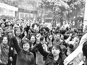 【記者古清兒/採訪報導】12日,原重慶市棉紡廠下崗女職工唐武,因代表原所在工作單位上萬名下崗職工維權被拘留。13日,重慶棉紡廠數百名職工高喊口號、舉著橫幅進行示威抗議活動,要求當局立即釋放唐武。當局迫於壓力,於13日傍晚5點將唐釋放。 反腐有理 維權無罪 據中國泛藍聯盟報導,12日,50多歲的唐武因與本廠10幾名下崗工人走上街頭抗議示威,代表所有下崗職工維護權益,被重慶公安局以「聚眾鬧事」為由關進沙坪壩區白鶴嶺看守所,並處以治安拘留12天。 13日,棉紡廠的數百名下崗職工到重慶市沙白鶴嶺看守所門前聲援,要求當局立即釋放唐武,現場職工高喊口號和舉著橫幅:「反腐有理 維權無罪」,並大聲唱起了「國際歌」。 在工人們的強烈要求下,當局被迫允許將唐武保釋。在現場,工人們當天按每人限捐一元的方式募捐,共收到900多元募捐款,來支付唐武的保釋費用。 中國泛藍聯盟成員張起表示,重慶從一廠到六廠的下崗工人聯合起來維權。當局抓了唐武,被抓之後,這些工人到公安局門口和拘留所門口去抗議,當局迫於壓力,一天半的時間就把唐武給放了。 下崗職工長期維權 據悉,重慶棉紡一廠原是國有企業,在上世紀90年代因企業股份制改革,許多工人被強行解除勞動合同下崗,失去了所有福利待遇。工人們已維權長達5、6年之久,但至今沒有任何結果。 中國泛藍聯盟成員華一在經過深入調查後,他表示,在整個企業股份制改造過程中,企業與當地政府暗箱操作,工人們的正當權益始終未得到合理解決。導致重慶棉紡一、二、三、四、五、六等廠的國有資產大量流失,成為某些利益集團和權勢人物的囊中之物。 重慶棉紡一廠職工表示,很多職工在工廠辛勤勞動工作了20至30年,權益卻得不到保障,當局用一年200元人民幣的價錢,就買斷了這些職工的未來,如工作30年,工人只拿到6,000元人民幣的買斷款,未來的生活就沒人理了。 而在3月23日,重棉一廠200多位下崗工人自發地在重慶市沙坪壩區土灣地區馬路上舉行遊行抗議活動,當局派出上百位軍警分乘六輛警車前來與群眾發生嚴重對峙。在軍警恐嚇和驅逐下,職工們和平地退卻,沒有給當局留下鎮壓的口實。 職工:將抗爭到底 唐武被抓進看守所後,她絕食抗爭2天,因原患有高血壓等病症,現在她的身體非常虛弱,放出來後,馬上送往醫院治療。 重慶棉紡一廠職工表示,維權多年了,當局對工人的情況置之不理,工人沒辦法,只好走上街頭抗爭。但當局派來警察要鎮壓,並抓了維權代表。 重慶棉紡一廠職工表示,他們將繼續抗爭,抗爭到底,真理會站在他們這邊的,也呼籲國際社會關注中國失業勞工的悲慘狀況。◇ |