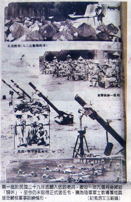 〔記者游文玉/竹山報導〕台灣第一批於民國三十九年志願入伍的四千五百名新兵,服役一年九個月被迫「歸休」,遲至五十年後才領得「視同退伍證明」的證件,服役長達五十餘年未正式退伍的老兵,雖取得榮民身分,卻未享榮民福利,現年約八十歲的老兵逐漸凋零,依然念念不忘要求國防部發給正式退伍令及國家賠償。 被迫「歸休」 領不到退伍令 當年國民政府轉入台灣,一群十七、八歲的台灣菁英,在政府還未實施兵役義務之前,便憑藉著一股愛國的情操,參加「陸軍總司令部台灣軍士教導團」,準備將自己獻身給國家,在接受一年九個月的訓練之後,卻集體被迫提前解甲歸田,壯志未酬的勇士,無法領得退伍令,只以「歸休」之名領得「歸休證明書」。 當初身披「盡忠報國」、「為國爭光」紅綵帶的志願新兵,個個精神抖擻,在沿路鳴放鞭炮及鑼鼓喧天之下,接受地方父老、親朋好友的列隊歡送,挺身踏上征途,於高雄縣鳳山的簡陋營區接受密集訓練,結訓時,且由當時以治軍嚴格著稱的孫立人將軍親自校閱,無奈在接受一年九個月軍事訓練後,竟突然接到「歸休」命令,「歸休證明書」上只簡略證明「受訓期滿提前歸休」。 「陸軍軍士官教導總隊退伍人員協會理事長」張方州指稱,當時的長官還特別訓示,歸休非退伍,是要在家鄉待命,必要時隨召隨回,而且賦予:一、要協助政府宣導政令;二、要服務民眾,當軍民橋樑;三、要做全民表率,維持軍人本色等三大任務。歸休後經歷無數次的動員演習、教育召集,且繼續協助役政單位組訓民眾,本身卻也因歸休的綁手綁腳,錯失進修良機,無法尋求發展。 直到八十七年間,因為老兵的申請,政府才將歸休證明書換存,換發「視同退伍證明書」,憑證明書向退輔會申請「榮譽國民證」,但於八十八年全面停發,引起老兵們的不滿與不斷的爭取,於八十九年三月才續換發榮民證,但也僅止於此,並無任何福利,老兵且仍未取得正式的退伍令。 張方州表示,當初懷抱著「愛國護鄉」的熱情從軍,三餐都是露天坐小板凳,睡的則是粗糙硬板草蓆大通鋪,滿腔熱血換來的竟是政府無情的回報,當時在一起受訓、生活的四千五百名同學已先後凋零,六年前為爭取退伍令及國家賠償而組成的「陸軍軍士官教導總隊」的二千名成員,如今也僅剩一千餘人。 老兵感嘆:真心換絕情 記者游文玉/專訪
