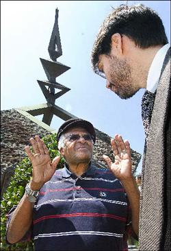 〔記者邱燕玲、范正祥/台北報導〕前南非大主教屠圖昨晚到義光教會、即當年林宅血案發生地,拜會林義雄及其家人。林義雄說,愛、寬恕、和解是人類解決衝突與糾紛的方法,圖屠是我們的典範;屠圖說,把寬恕當成禮物送出,就不必再被動等著對方道歉了。 林義雄與夫人方素敏、女兒林奐均、女婿印主烈,以及三名外孫女昨晚一同迎接屠圖,小孫女獻花送吻讓屠圖相當開心,奐均以流利英語訴說當年見到祖母及一對雙胞胎妹妹遭到刺殺的情景,而當年三姊妹一起彈奏的鋼琴,也留在原地做為歷史見證。 林義雄說,當年奐均身中六刀,但上帝保祐她留下來,如今女兒已是三個孩子的媽,被謀殺的舊宅也成了教會,有二十五年歷史,而愛、寬恕與和解,避免了以牙還牙,讓人性光明面得到發揮,使人向真善美境界提升。林義雄表示,可惜人是有弱點的,所以很少人可以用這些方法,更少人去身體力行實踐;而屠圖堅持以寬恕、和解在南非主持真相調查委員會,讓人欽佩。 出席這場會面、與林家有長年情誼的田媽媽提問表示,林家血案至今未找到兇手,要如何寬恕原諒?屠圖回答,與其等待對方要求原諒,不如自己把寬恕當禮物送出,這樣就不需再被動等待,我決定給一元,接下來就看對方收到一元時要如何運用,而不是看對方態度才決定要不要給這一塊錢。 屠圖的談話讓林義雄及在場人士相當認同,最後奐均獻唱「奇異恩典」歌曲,現場氣氛溫暖動人。 屠圖昨天白天時則會見台灣的政治受難者代表,他告訴二二八受難者家屬和白色恐怖受難者代表,「把過去的歷史、故事說出來,就是一種治療的方式」! 屠圖有感而發表示,他看到台灣的政治受難者代表的面孔,有一種很特殊的感覺,大家臉上的神情,「很和平、很溫柔」。對照過去他在南非類似場合看到的神情,受難者及家屬很多人的臉孔是非常憤怒,是想要報復的那種表情。他也鼓勵台灣繼續探索並公布這些歷史真相,不只台灣民眾自己該知道,也該讓全世界知道,因為公義的價值是普世的。 |