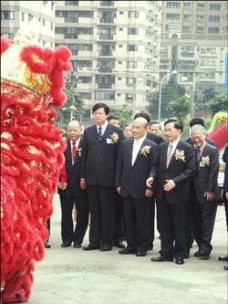 蘇協助奔走 扁讚讓中央與地方雙贏 〔記者李穎/中和報導〕國內首座BOT方式營運的署立雙和醫院昨舉行上樑典禮,陳水扁總統、行政院長蘇貞昌蒞臨參加,陳總統致詞時大力讚揚蘇貞昌在台北縣長任內協助奔走,才讓雙和醫院籌建案順利催生,寫下醫療史重要一頁,讓中央與地方雙贏,打造中永和成為新世紀健康社區。 九十四年十月動工的署立雙和醫院,主體鋼樑結構接近完成,昨上午舉行上樑典禮。 陳總統致詞指出,民國七十九年政府投入十七億元取得雙和醫院四公頃的預定地,八十二年完成都市計畫變更為醫療用地,礙於當時省政府對醫院採公辦民營計畫,意見不一,使得雙和醫院興建案延宕十多年。 總統說,幸虧時任台北縣長的蘇貞昌與前中和市長呂芳煙奔走,極力向衛生署爭取,八十八年確定公辦民營,九十二年底確定由台北醫學大學取得投資經營權。 愚公移山 「把問題變成資產」 蘇揆說,興建雙和醫院必須移除四十公尺高的丘陵,當時中央礙於水保法,經建會一度要求另尋地點,呂芳煙還曾至立院下跪請求,讓興建計畫起死回生。透過地方與縣政府密切合作,克服了水土保持問題,移除約卅七萬立方公尺土方,三萬多車次卡車來回裝載,將土方回填於營建署北工處秀朗橋工地、打造鶯歌卅公頃新生地,以愚公移山的精神「把問題變成資產」。 陳總統說,署立雙和醫院預計明年七月一日正式營運,未來將提供急性病床、特殊病床、精神科急性病床、呼吸照護病床等共一千三百四十八床,提供中、永和及鄰近地區一百七十萬民眾的醫療需求。 蘇不居功 呂芳煙感動允報恩 蘇貞昌有感雙和醫院籌設過程一波三折,昨天兩度邀請呂芳煙起立接受民眾掌聲與感謝,他將催生醫院功勞都歸給呂及民進黨籍立委趙永清。 蘇貞昌說,老市長呂芳煙為雙和醫院籌建不惜下跪,讓他深受感動,他強調只要有心爭取地方建設,中央與地方合作,一定受到人民歡迎。 就在蘇揆準備搭車離去之際,呂芳煙突然向蘇下跪並連聲道謝,蘇見狀急忙扶起他,還輕拍呂的肩膀後才離去。 呂芳煙說,如果沒有當時的縣長蘇貞昌,醫院根本蓋不起來,他下跪是為了感謝蘇貞昌對於中和地區的貢獻與協助。呂芳煙也允諾「有情報情、有恩報恩」,未來蘇貞昌參選總統,他會幫忙拉票。 這場典禮也發生一件小插曲,當陳總統致詞時,被一名自稱政戰學校上校退役的何姓紅衣婦人嗆聲,婦人警訊後被依違反社會秩序維護法送辦。 |