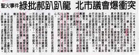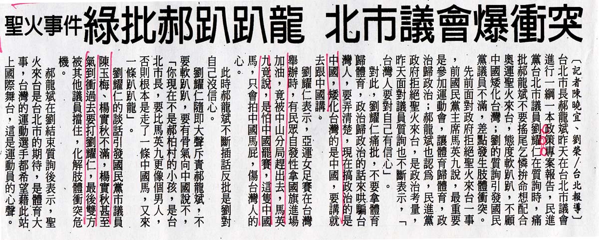 2007.05.01自由時報 聖火事件 綠批郝趴趴龍 北市議會爆衝突 |