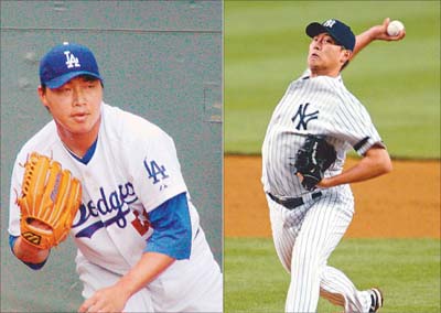 昨天旅美棒球好手王建民(右)、郭泓志(左),兩人出戰,凱旋而歸,對台灣球迷而言,可謂雙喜臨門。洋基4比1勝響尾蛇,王建民優質先發再添一勝,連續3場取得勝投,摘下本季第6勝。郭泓志投打俱佳,不但取得勝投,還締造我在美職棒第1支全壘打的紀錄,由投手創下這個紀錄,實屬難得。 |