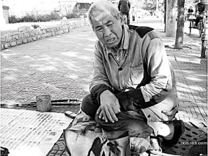 【記者馮長樂/報導】圖片上這位滿臉愁容、衣衫襤褸的老人叫姚自修,曾經是電子工業部陝西寶雞國營七九二廠工人,自述為中共造過20多年原子彈配件。因公致殘後,事業、家庭、人生跌入低谷。因原單位領導絕不落實相關政策法規,最終使他淪落街頭乞討為生。 近日有網友給記者發來有關姚自修北京街頭擺地攤訴苦的圖片。地上擺的一張乞討緣由的紙張寫著:他1957年進廠做工人,做了20多年原子彈零件。1976年公傷導致腰椎受損連帶著下肢癱瘓。失去工作能力和生活能力後,妻子帶著孩子離他而去。 1989年,60歲的姚自修退休,只拿到每月200元退休金和25元公傷護理費。因工資太低,這些年不足以維持生活。2003年他向陝西勞動局提出申訴,經勞動局仲裁,要求其原單位付給他每月800元退休金和200元公傷費。但他的單位拒不執行仲裁決議,為對他上告行為打擊報復,該單位把原有的每月200元工資和25元護理費也停發了。 無奈姚自修開始打官司,從中院打到高院,任憑什麼文件下達到廠裡,廠官就是拒不執行。 04年到05年他開始上訪北京,身無分文的他只得露宿街頭乞討為生。寶雞和北京之間,跑了幾個來回,問題仍然沒有解決。 據網友說:現在老漢被一個垃圾處理場看門人收留。◇ |