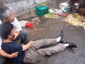 2007.06.27大紀元時報 北京黑牢吊打浙江78歲夫妻 【大紀元訊】近日在北京地下室遭受殘害和搶劫的浙江省維權訪民李秀女呼籲各界人士關注自稱民主法制政黨所施行的國家恐怖主義行徑!北京志願者深夜冒雨到受害訪民避難處訪談,根據掌握的情況,證實了「北京多處賓館與警方的地下室常年關押迫害維權訪民」的傳言。 據六四天網消息,據浙江訪民的大體描述,迫害地點酷像七省駐京處,6月24日週日,中國天網人權志願者親自趕到該處拍照外景,照片經訪民辨識,其驚恐的確認該處即是地下牢房所在地。 2007年6月1日上午,浙江訪民李秀女和應蘇英在北京被劫持,塞入汽車內送入遼寧省駐京處的地下室一個極其簡陋的房間。當時有十幾位浙江訪民關押在內,又5、6個身分不明的青年日夜看守。他們強行搜查李秀女等訪民,搶走千元先進、3個手機,一個照相機,隨後抓進的訪民9百多元先進與手機同樣遭到搶劫。眾多打手捆綁李秀女雙手,幾個人輪番毆打,打到癱倒在地,再用雙腳猛力踩踏身體,打手叫囂:「一條命玩得起!」李秀女在地面上躺了3天3夜! 在地下室,李秀女還目睹打手們將浙江78歲的徐德星夫妻兩人吊起雙腿狠毒毆打,用腳狠踢,並將其拖進一間黑屋子裡;同時還看見4個打手架著一個72歲老太太近來,拳腳相加打倒在地躺了一天一夜,不知最後到哪裡去了! 6月16日早晨趁看守熟睡,浙江訪民應蘇英幫助李秀女逃脫出虎口。目前,應蘇英的安危狀況令人擔憂!18日上午,李秀女再次遭遇綁架劫持,7、8個操著東北口音的地下室打手又突然出現,他們抓住李秀女便毆打,極力往一輛麵包車(ED0792)裡塞,訪民關春榮不顧危險攔住啟動的汽車並喊來眾多訪民前來救援,打手們才將李秀女丟下車,這樣第二次逃脫。◇ |