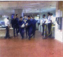 防爆毯裹人 扛向登機門 〔記者朱沛雄、林雅麗/桃園機場報導〕今天是香港主權移交十週年,港府遣返台灣法輪功學員赴港的強勢作為也達到最高點,港警甚至以防爆毯裹起抗拒遣返的學員,強制將他們扛往登機門,總計昨天共有近三百位持合法證件的學員遭港府分批遣返,人數創單日新高。 港警大陣仗 旅客們震驚 前晚約五百位法輪功學員自台搭機赴港,其中近三百人遭港府列入「黑名單」,被拒絕入境,他們在香港機場進行證照查驗時就被擋下,大批警察隨即將他們帶往其他房間進行調查,大陣仗的舉動,讓其他國家旅客相當震驚。 之前曾遭遣返的台灣希望之聲記者廖淑慧,前晚也以轉機為由抵達香港機場,並聲援遭拒入境的法輪功學員,當場遭機場警方制止,手機電池也被沒收,隨後更失去蹤影,返台的法輪功學員相當擔憂她的安危。 一位昨天遭遣返的劉小姐表示,她與十幾人被留置在一個門窗緊閉的小房間幾個小時,不流通的空氣讓她相當不舒服,向警察哀求開個門窗讓空氣流通也得不到回應,直到她忍不住嘔吐後,警衛才找來醫生;劉小姐氣憤的表示,在繁榮進步的香港機場,居然連呼吸一口新鮮空氣的自由都沒有。 學員才下機 被長槍指著 昨被遣返的學員中,有一百零五人在上午被遣返高雄小港機場,一位來自台南的孫小姐說,他們前晚抵港後,大批航警就守在機艙口,將學員團團圍住;她說,航警大陣仗對待手無寸鐵的學員實在可笑,一對國小一、二年級的楊姓小兄妹還因此被嚇哭。 在二十八日赴港不成被遣返的法輪功學員蘇威昆也指出:「一下飛機就被用長槍指著,免稅商店的鐵門快速放下,港警不願讓遊客看到處理法輪功學員的情況。」另有法輪功學員說,其實港警知道台灣民眾是為香港爭取民主自由,許多港警亦表示同情,甚至有女警在旁落淚。 |