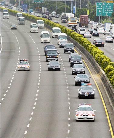 陳雲林離開機場後,車隊由管制道路一路暢通開往圓山。 (記者潘少棠攝)