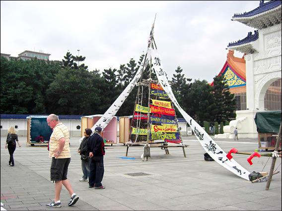 野草莓學運持續進行,還有外籍人士到廣場關切。(記者胡清暉攝)