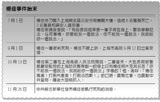【記者張海山/綜合報導】據中共官方新華社快訊,上海襲警殺人案楊佳26日上午在上海被執行死刑,中共動作之快,讓世人震驚。