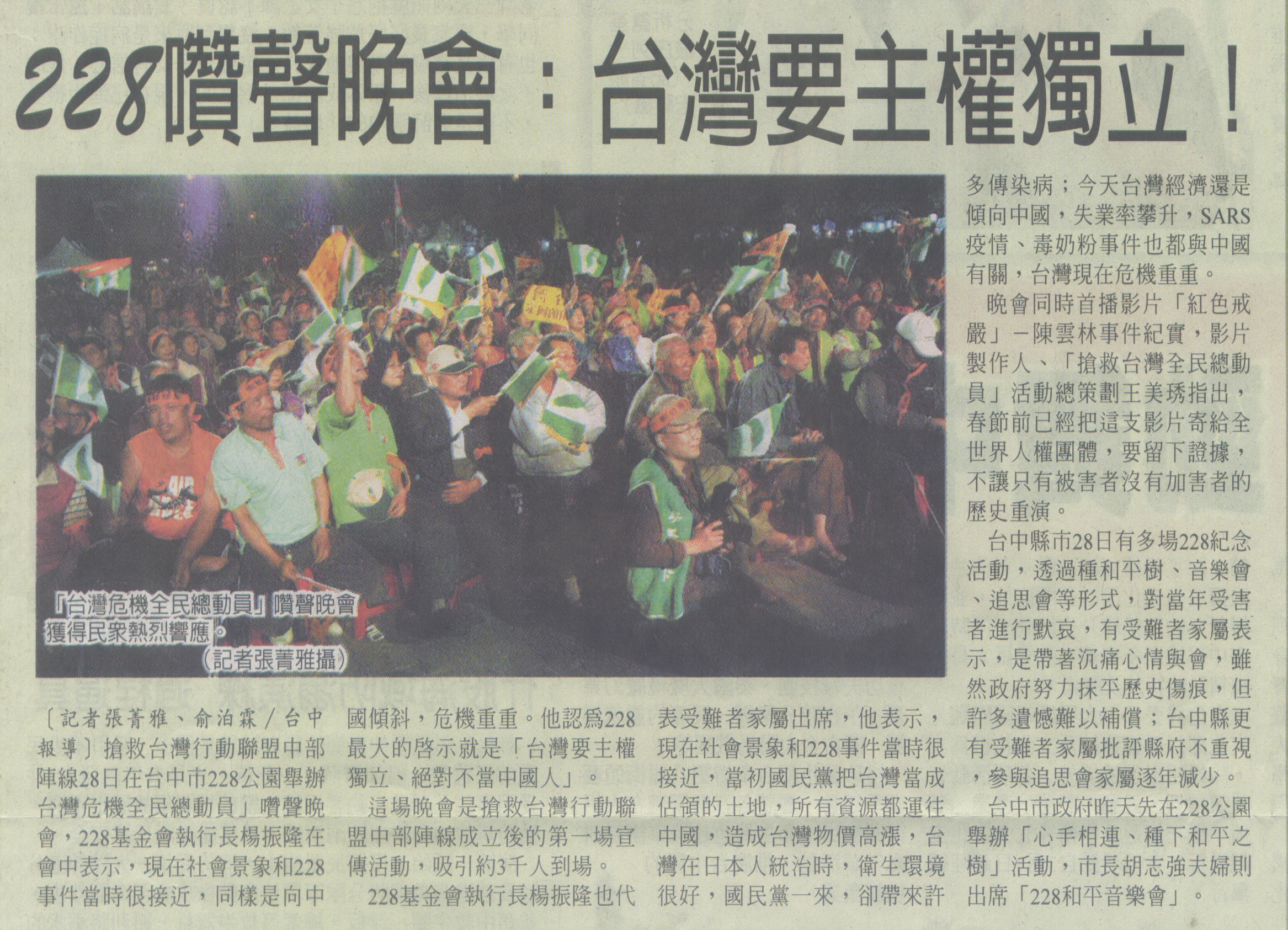 20090301自由時報 228讚聲晚會:台灣要主權獨立