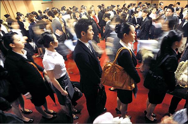 1111人力銀行副總經理吳睿穎說,民間人力銀行更慘,現有三十五萬人在1111登記求職,但只有十五萬個職缺,求供比僅○點四三,以往一個人可以有一個以上的工作機會,現在是七個人搶三個工作。