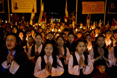 流亡藏人3月10日在印度達蘭莎拉(Dharamsala)紀念流亡50周年。(Getty Images)