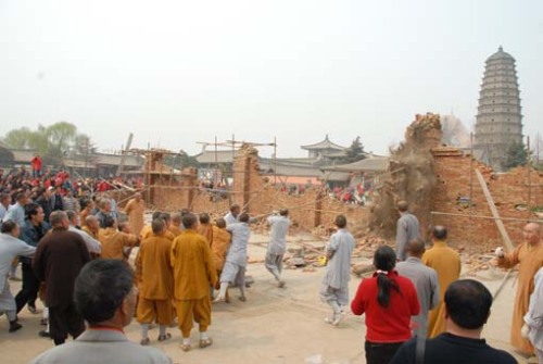 【大紀元訊】陝西省政府組建的法門寺文化景區建設有限公司長期在法門寺周圍建築圍牆,開發人造景區並計畫抬高門票價格。上週五,近百名僧侶集體採取抵制行動,推倒圍牆,引起大量遊客圍觀。法門寺也在當天發表公告,關閉山門以示抗議。
