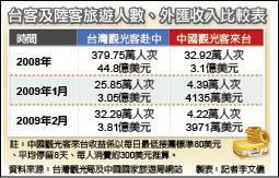 台客及陸客旅遊人數、外匯收入比較表