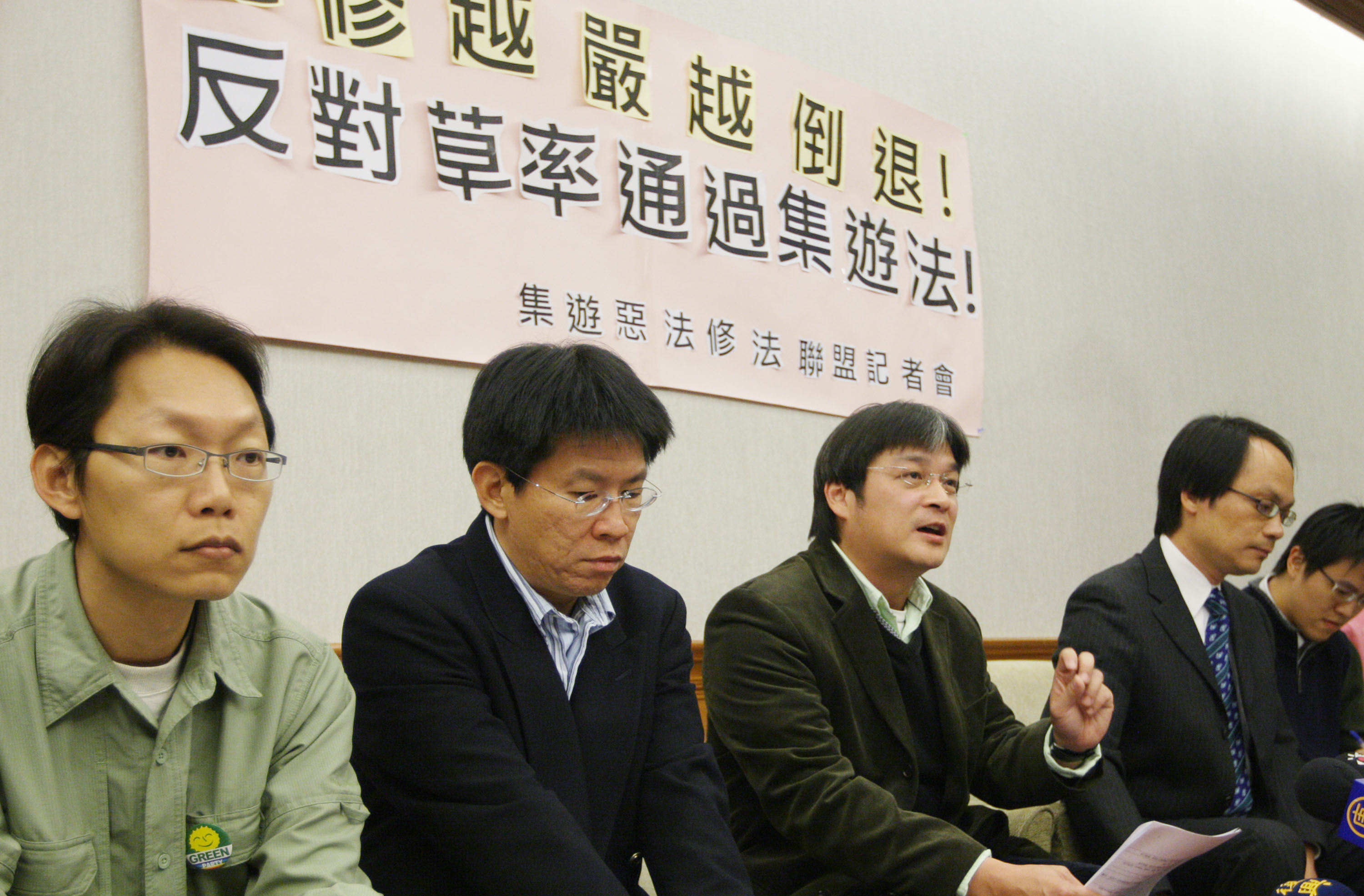 由台灣人權促進會、民間司改會等團體及學者所組成的「集遊惡法修法聯盟」昨日上午10點召開記者會,表達對於行政院版草案內容的質疑。
