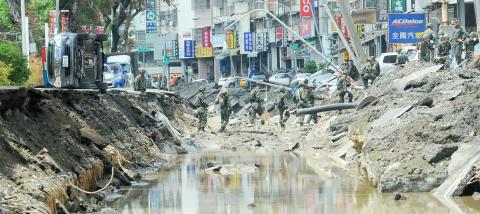 DELIVERY FAILURE: As attention focused on propene fuel gas transported by LCY Chemical Corp, rescue efforts continued in the rubble of the ravaged district