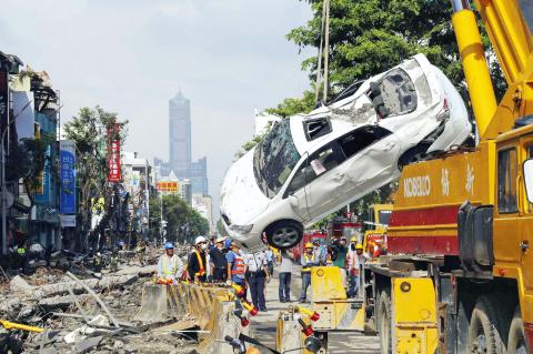Meanwhile, Greater Kaohsiung Maintenance Office Director Chao Chien-chiao (趙建喬) said that his department is to begin resurfacing Sanduo Road — the thoroughfare at the heart of the explosions — today.