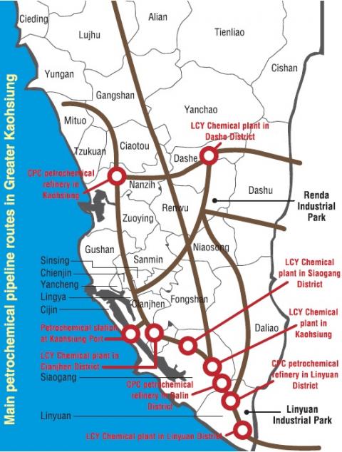 “The Petroleum Administration Act (石油管理法) stipulates that the central government is in charge of sanctioning the installation of petroleum pipelines as the local government’s authority over the pipes only exists because it is in charge of the roads under which the pipes run,” Chen said.