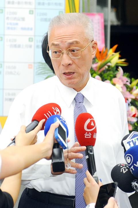 Vice President Wu Den-yih responds to reporters’ questions in Taipei yesterday concerning his responsibility for approving the installation of underground petrochemical pipelines when he was mayor of Kaohsiung.