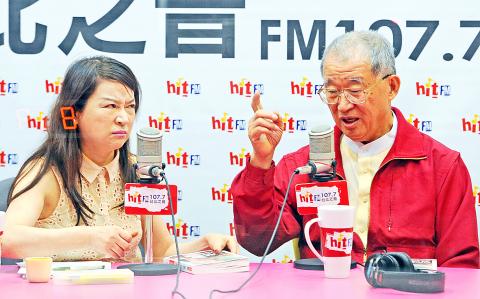 Former Control Yuan president Wang Chien-shien talks to radio host Clara Chou about the new Control Yuan members and former Government Information Office official Kuo Kuan-ying during an interview yesterday.