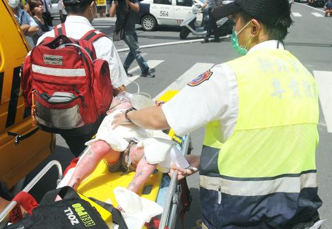 At press time, the grandmother, who was sent to Wan Fang Hospital in Taipei, was unconscious. She has second-degree burns covering 90 percent of her body, as well as bone fractures, the fire department said.