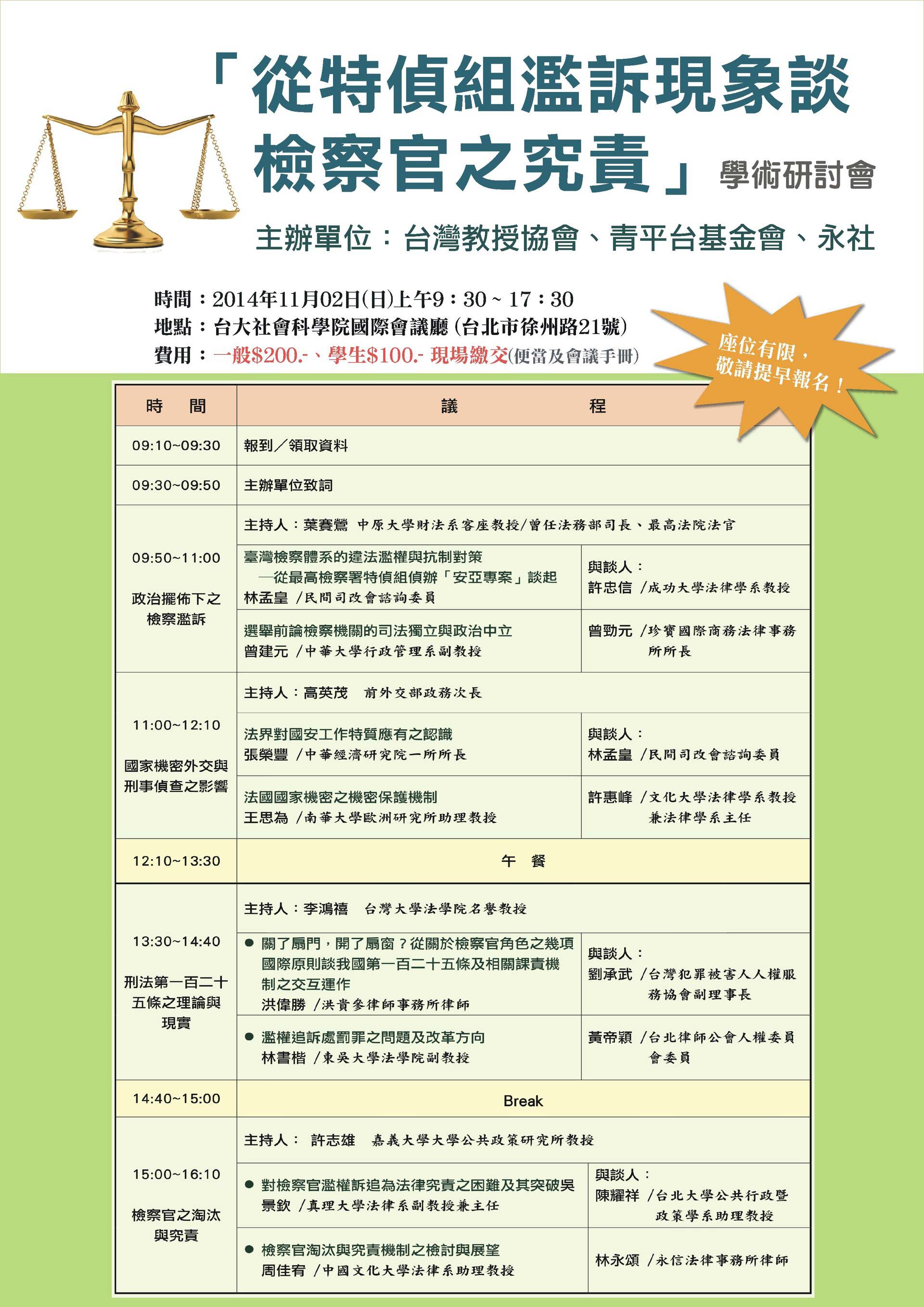 11/02 【從特偵組濫訴現象談檢察官之究責】學術研討會 |